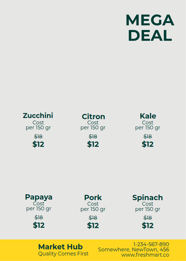 1-234-567-890 Somewhere, NewTown, 456 www.freshmart.co